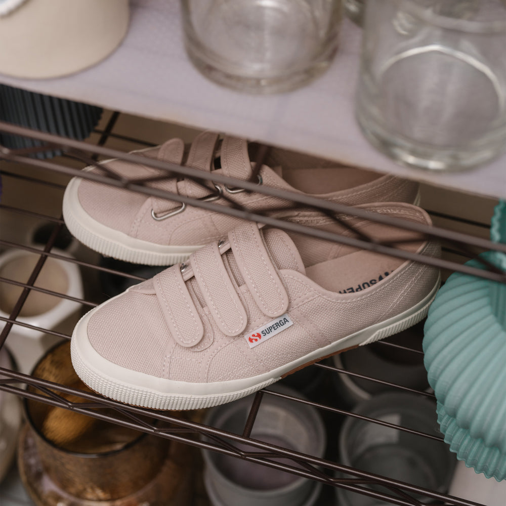 @hansab__ wears the classic icon Superga 2750 Strap in Beige Natural embodying elegance and versatility in every step.